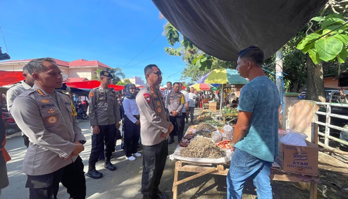 NUSANTARA1.ID – Kapolda Gorontalo, Irjen Pol Drs. Pudji Prasetijanto Hadi,MH menemui sejumlah pedagang di pasar tradisional yang terletak di Jalan Tondano, Rabu (29/5). Langkah tersebut sebagai bentuk membuka forum komunikasi guna membahas dan menyerap aspirasi terkini yang berkembang di tengah masyarakat.
