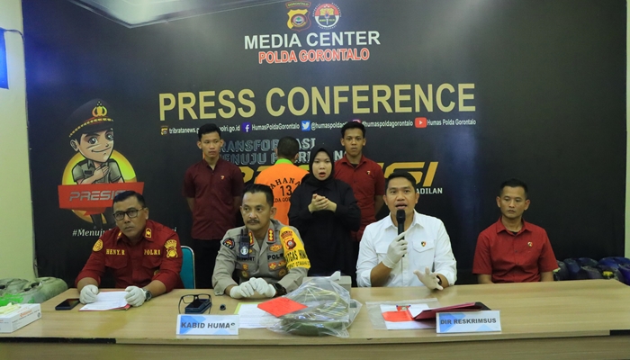 Melalui Press Conference di Bid Humas Polda Gorontalo, pada Kamis (27/3) yang dipimpin oleh Kabid Humas Polda Gorontalo, Kombes Pol. Desmont Harjendro, SH, SIK, MT.